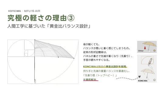 KONCIWA株式会社(本社:東京都文京区)は、独自の形状記憶テクノロジーにより「1秒」で折りたたみが可能な次世代日傘シリーズから、最新モデル「MFU1S AIR」を発表いたします。