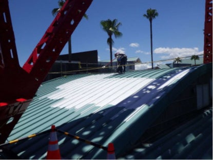 ▲博多港ベイサイドミュージアム屋根への塗装前の様子