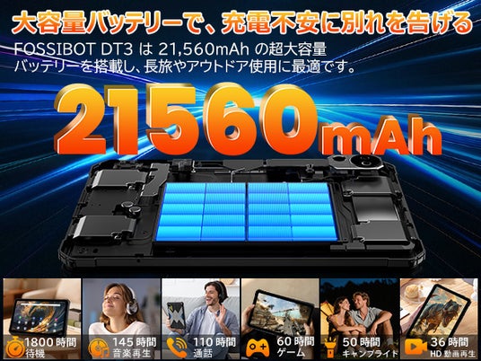 21,560mAhの大容量バッテリーを内蔵し、長時間使用にも対応。