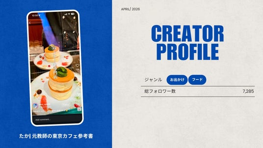 「たか| 元教師の東京カフェ参考書」は、東京のカフェを中心に取材を行い、動画の制作・発信をしています。これまでの投稿の中には、再生回数160万回を超える動画も。食分野に強みを持つ同メディアの加盟により、フードやドリンクなど新商品の認知拡大が期待できます。