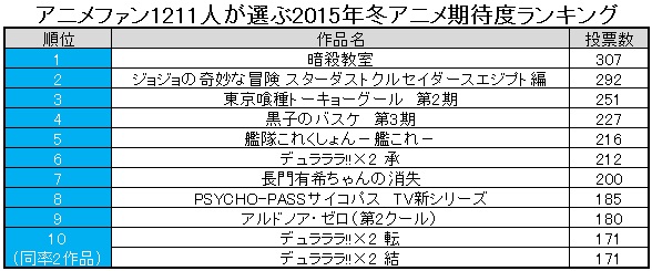 ■アニメファン1211人が選ぶ2015年冬アニメ期待度ランキング