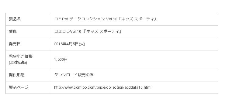 コミPo! データコレクション Vol.10『キッズ スポーティ』概要