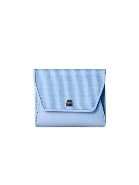 コンパクトかつ大容量な3つ折り財布。AKRISロゴが刻印されたトラぺゾイド(台形)のメタルパーツが控えめで上品な印象。