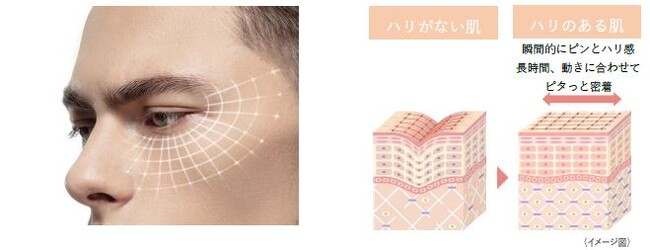 薄く、瞬きなど動きの多い目もとの皮膚にスーッとのびて、ピタッと密着する進化系ストレッチジェルを採用。やや黄色みがかった弾力のあるジェルは、肌表面に見えないストレッチうるおい膜を形成し、乾燥しがちな目もとに長時間うるおいを与えます。