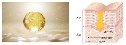 表皮だけでなく、肌の深層部「真皮」まで浸透するシワ改善有効成分「ナイアシンアミド」(ビタミンB群の一種)を配合。レシチン乳化技術を採用し、まるで肌に吸い込まれるように浸透します。