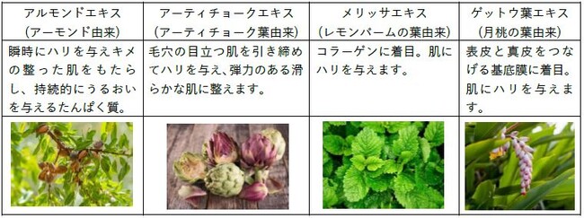 *2:アルモンドエキス、アーティチョークエキス、メリッサエキス、ゲットウ葉エキス:保湿成分