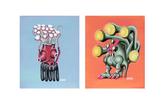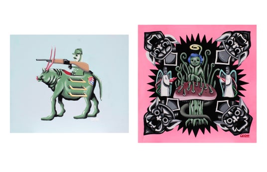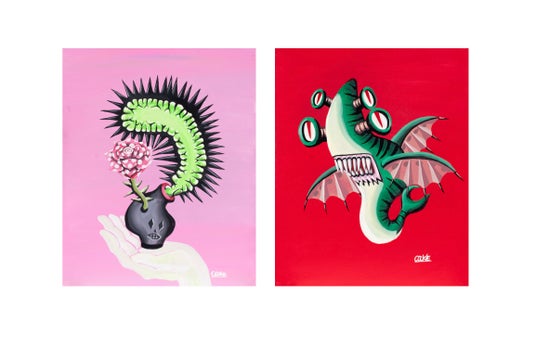 PROFILECOOKIE started his career as a comedian in the duo "Yasei Bakudan." (YOSHIMOTO KOGYO HOLDINGS CO., LTD)In 2019, his career as a painter started under the name of "COOKIE" at KOMIYAMA TOKYO. The strange characters depicted in the "Future Human" series, which is based on the fictional humans in the near future, have established a one-of-a-kind style as the "new language" of his artistic career. Aside from the work, COOKIE pursues his passion for comedy, rock-band activities, motorcycle collection, and mods fashion, and always creates new and unique works.