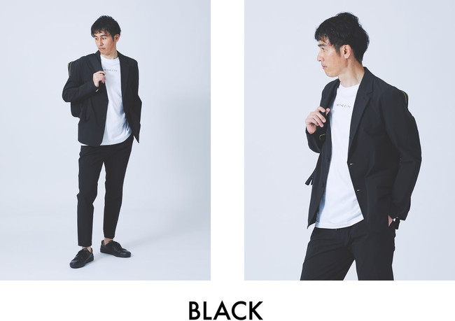 洗練された印象のブラックはカジュアルなインナーを合わせてもモード感のある仕上がりに。