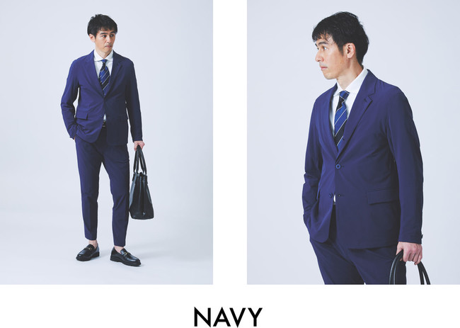 ABAHOUSEらしいスタイリッシュでスマートなシルエットのジャケットとイージーテーパードパンツの組み合わせで、自転車通勤はもちろんビジネスからカジュアルまでマルチに使用できるセットアップ。自転車で通勤後にそのままのスタイルで仕事ができる機能性とファッション性を目指しました。素材には高い伸縮性を持つ2WAYストレッチタイプの生地を採用、耐摩耗性や引き裂き強度に優れたコーデュラの糸を使用しており、撥水性やウォッシャブル性能も兼ね備えています。