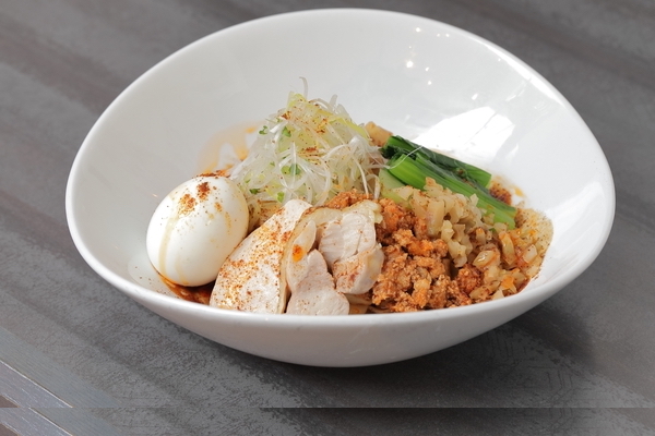 ゴマやナッツ類を配合した自家製オリジナルのチーマージャンに八丁みそをブレンド。名古屋名物、きしめんのような平打ち麺とよく和え、濃厚さを堪能する満足感の高い一杯。トッピングのモモ肉とムネ肉のチャーシュー、煮卵は、岡崎の地鶏・岡崎おうはんを使用する。