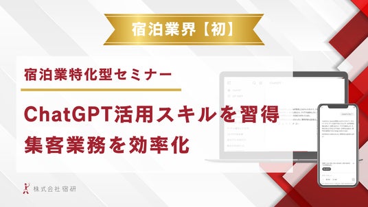 業界最多の累計契約5000軒を超える宿泊施設の集客課題と20年以上向き合ってきた株式会社宿研が、業界初のChatGPT活用スキル取得セミナーを開始します。