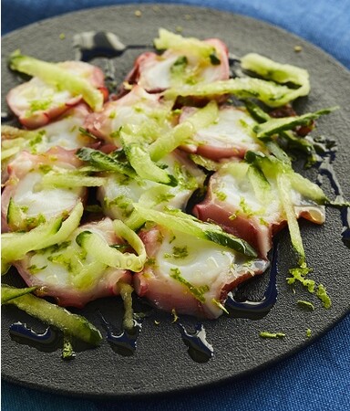 ◆お刺身のサラダ仕立てを4品:蛸ときゅうりとライム/鯵の小さな一品/イサキの湯霜/鮪のカルパッチョ