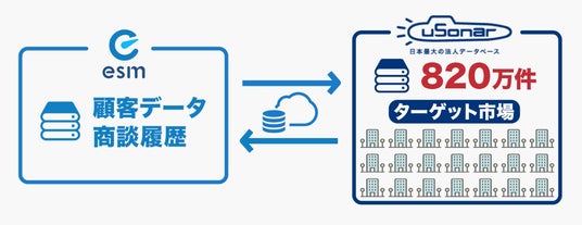 同社は、新規顧客へのアプローチ強化と売上拡大を目指して、ユーソナー株式会社が提供する企業データベース「uSonar」とeセールスマネージャーを連携し、活用しています。ユーソナー社が持つ820万件の企業データベースと、eセールスマネージャーに蓄積された顧客企業を連携することで、まだアプローチができていない見込み顧客を把握するホワイトスペース戦略を実行しています。また、各事業部で重複して登録されてしまった顧客企業を名寄せするデータクレンジングによって顧客情報が一本化され、部門間連携の強化と業務効率化が可能となりました。