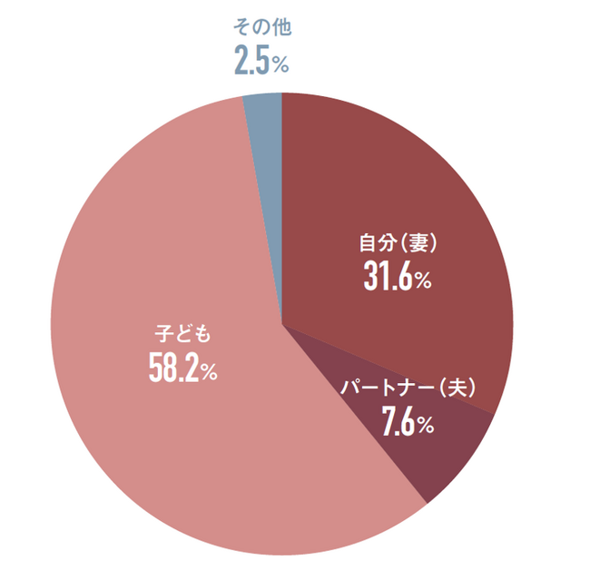 「子ども」が58.2%、「自分(妻)」が31.6%、「パートナー(夫)」が7.6%となりました。子ども発信で塾や習い事を始めているケースが6割近くと最も多く、関連ビジネスのマーケティングに際してはいかに子どもの心を捉えられるかが重要となるといえます。子どもが希望して、良い経験になることがわかっていれば、保護者は出費を惜しまないと思われます。