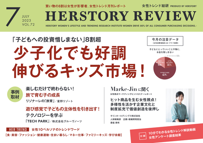 HERSTORYが運営する女性トレンド総研は2023年6月10日発刊のHERSTORY REVIEW7月号内にて、「子どもに関する消費意欲の本音調査」の結果を公開しました。