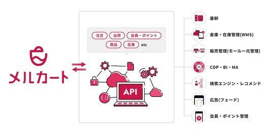 「作業は最小に、売上は最大に」というコンセプトのもと、メルカートはEC運営の効率化を目指し、APIの提供を開始いたします。APIを活用することによりメルカートを利用する事業者は、EC運営に関わる様々なプラットフォームとシームレスに連携することが可能となり、出荷業務の自動化、在庫自動同期、マーケティング施策の高速化など、あらゆる業務効率を得るとともに、EC戦略・施策にリソースを集中させることが期待できます。