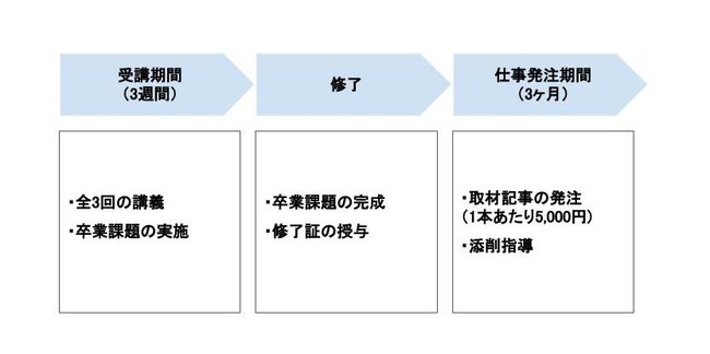 また、その3ヶ月間に執筆した記事は、WEB上で公開されるので、今後仕事を獲得する際のポートフォリオとしても活用できます。