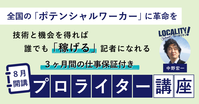 合同会社イーストタイムズは、2022年8月より、全国の「ポテンシャルワーカー」に対し、取材記者になる技術と機会を提供する、仕事保証付きプロライター講座「ローカリティ!スクール・プロフェッショナル」を開講します。