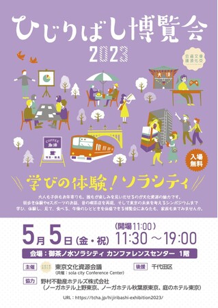 東京文化資源会議は「ひじりばし博覧会2023」を5月5日(金・祝)に開催いたします(共催:sola city Conference Center)。ひじりばし博覧会では、文化資源に関わる様々な取り組みを展示やワークショップなどの体験コンテンツや、セミナー、シンポジウム、そして楽しいお食事コーナーなど、幅広い催しを用意しています。遊び、学び、体験し、見て、食べるを、一日かけて文化資源を楽しめる博覧会です。