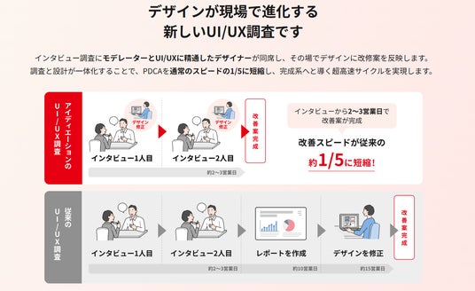マーケティングリサーチ事業を展開する株式会社アイディエーション(本社:東京都渋谷区、代表取締役:白石章兼、以下「当社」)は、ユーザーインタビューのインサイトをその場でデザインに反映し、超高速で検証・改善を行う新サービス「アイディエーションのUI/UX調査」を正式にローンチいたしました。