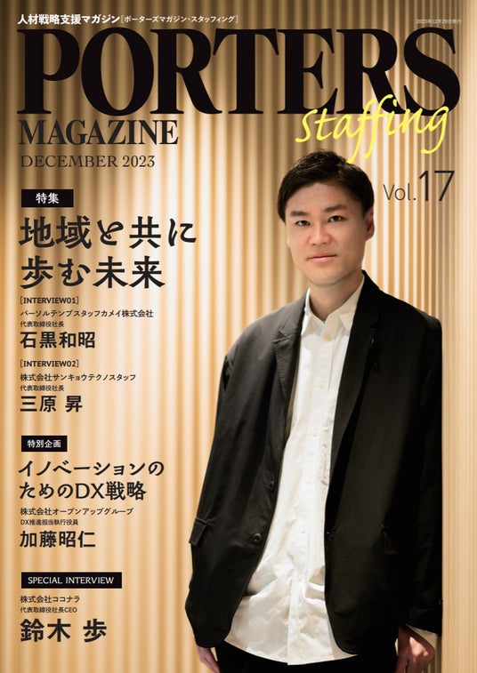 人材ビジネス向けクラウドシステムを提供するポーターズ株式会社(本社:東京都港区、代表取締役:西森康二)は人材戦略支援マガジン『PORTERS MAGAZINE Staffing Vol.17』を2023年12月28日に発行し、本日2024年1月17日よりWebサイトの公開をいたしました。