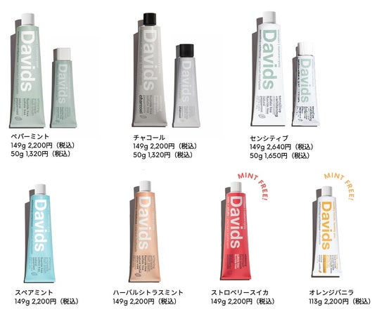Davids ホワイトニングトゥースペースト LINE UP