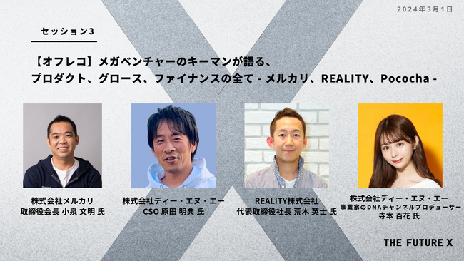 ◼︎セッション3:【オフレコ】メガベンチャーのキーマンが語る、プロダクト、グロース、ファイナンスの全て - メルカリ、REALITY、Pococha -
