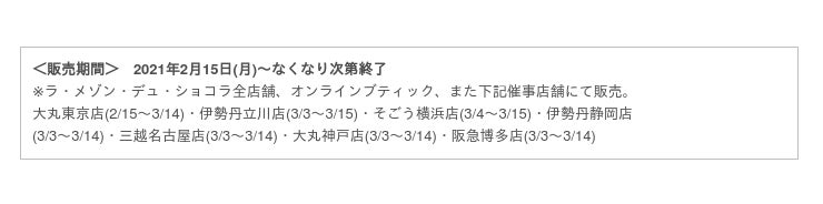 2021年2月15日よりラ・メゾン・デュ・ショコラ各店舗で発売