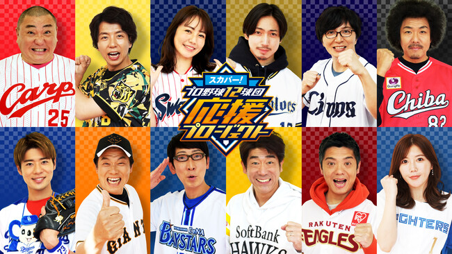 プロ野球セ・パ12球団公式戦を徹底中継でお届けするスカパー! は、野球を愛する皆様と一緒にプロ野球を盛り上げるべく『スカパー! プロ野球12球団応援プロジェクト』として、各球団愛溢れる12名の芸能人が集結。12名のプロ野球大好きな応援団長たちがシーズンを通して推しの球団へのアツい応援で盛り上げています。