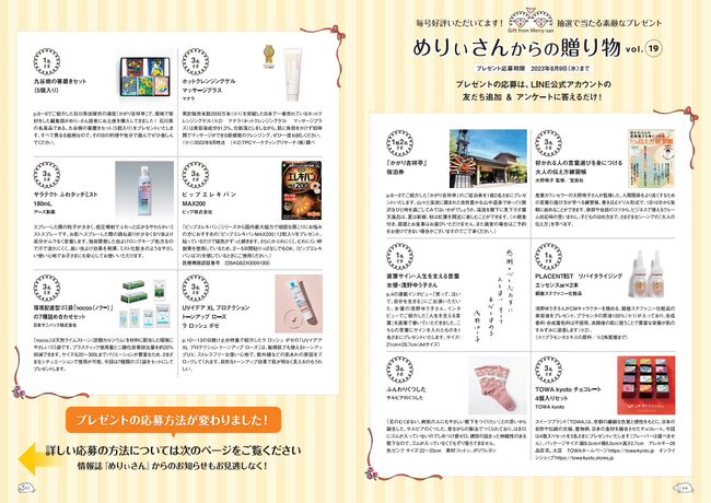 雑誌「めりぃさん」の定期郵送・読者プレゼントの応募は、