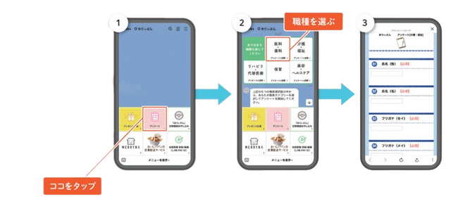 LINEのメニューから簡単に申し込み・応募が可能です。