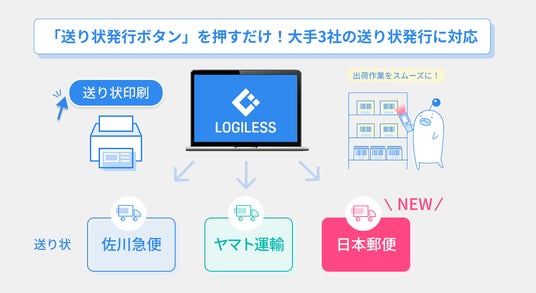 株式会社ロジレス(本社:東京都品川区、代表取締役:足立直之)が提供するEC自動出荷システム「LOGILESS」は、倉庫事業者向け有料機能オプションプラン「LOGILESS Plus[WMS]」において、日本郵便の送り状発行機能とAPI連携を開始したことをお知らせします。