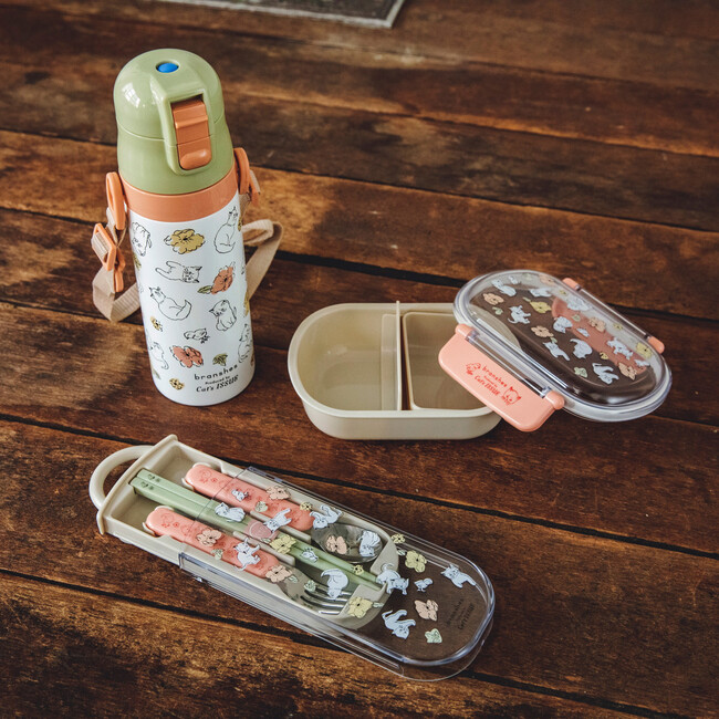 やんちゃな子ネコがお花と戯れているような柄がかわいいランチシリーズ。お弁当箱、カトラリーセットは日本製、食器洗い乾燥機対応、抗菌仕様。【Cat's ISSUE】ネコ柄水筒(容量470ml)FREE ¥3,960 taxin【Cat's ISSUE】ネコ柄お弁当箱 FREE ¥2,310 taxin【Cat's ISSUE】ネコ柄カトラリーセット FREE ¥2,310 taxin