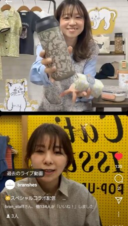Cat’s ISSUE代表の太田メグさん(画像下)をゲストに迎え、コラボ配信にて商品に対する熱い思いをトーク。ブランシェススタッフの飼っているうちのネコ紹介コーナーもあり熱狂的なCat’s ISSUEファンから親子まで楽しめる内容に。
