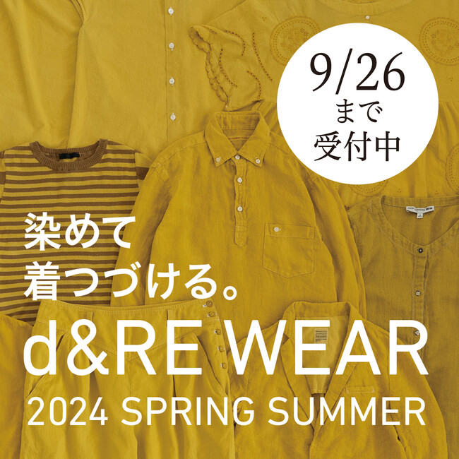 シミや色あせなどで着られなくなってしまったお気に入りの服を、再びアイテムとして蘇らせるプロジェクト「d&RE WEAR」の期間限定イベントです。定番カラーの黒と紺に、毎回異なるシーズンカラーを加えた3色の受付を年2回開催しています。今季2024 春夏のシーズンカラーは「ゴールデンサンド」。締め切りまであと1週間のため、ご希望の方は店頭およびwebサイトでお申し込みください。