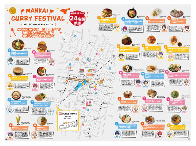 2022年9月30日(金)~10月31日(月)の期間で東京・下北沢で開催される「下北沢カレーフェスティバル2022」とのコラボ企画「MANKAI CURRY FESTIVAL」を実施します。『A3!』に馴染みのあるカレーとのコラボとして、新生MANKAIカンパニーが年に一度のカレーの祭典「カレーフェスティバル」を盛り上げるべく、期間中、現地では劇団員24名がピックアップしたおススメ店のご紹介やグリーティング企画などを予定。カレーフェスティバルに参加する117店舗の中から24店舗にて、劇団員のキャラクターパネルの展示やオリジナルコースター配布の他、カレーフェスティバルMAP内で、キャラクターによる店舗紹介コメント掲載等を行います。