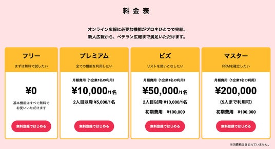 ※無料のフリープランと、オンライン広報に必要な有料の各種プランがあります。