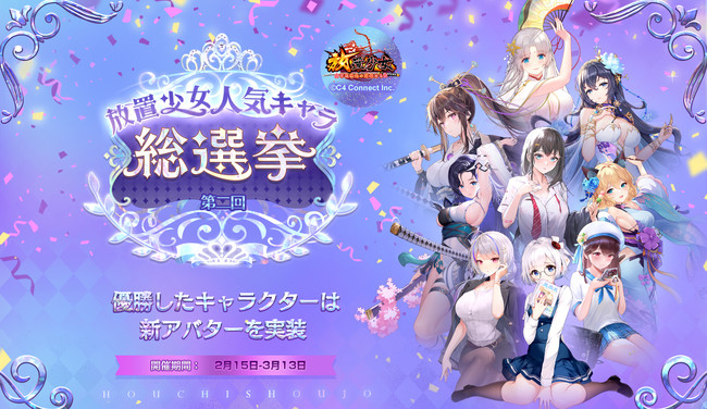 C4 Connect株式会社(本社:東京都新宿区)は、現在サービス中のスマートフォンアプリ、美少女RPGゲーム『放置少女~百花繚乱の萌姫たち~』(以下、『放置少女』)にて、2022年2月15日(火)より第二回放置少女人気キャラ総選挙を開催することをお知らせいたします。