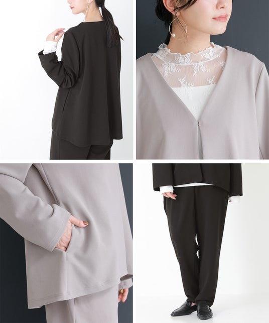 n'OrLABELノーカラージャケット&パンツセットアップ(pln0064)¥10,980 サイズ:1(M~L),2(LL~3L)