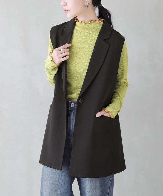 n'OrLABELツイルテーラードジレベスト(hln0013)¥5,980 サイズ:1(M~L),2(LL~3L)