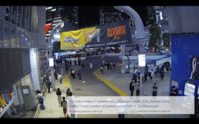 新ホームページのメインコンテンツとして、渋谷センター街周辺にカメラ3台を新設し、ライブ映像の放映に加えて当社のAI画像解析技術による人流計測データをリアルタイムで公開します。