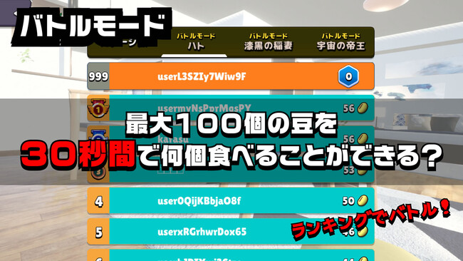 30秒間で豆を食べ切ろう!バトルモードやまったりリビングモードも搭載
