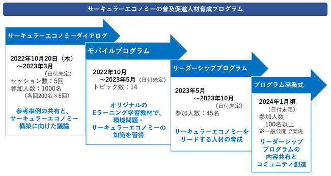 人材育成プログラムの前半は、日本独自の分別文化やパッケージ技術の知見を共有し、参加者で議論を行う「サーキュラーダイアログ」を実施します。このプログラムでは、サーキュラーエコノミーへの取り組みを先進的に実施する日本国内の企業・団体にもご登壇いただき、様々な視点での事例を提供していきます。
