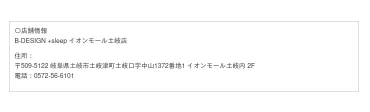 2022年10月9日、イオンモール土岐に「B-DESIGN +sleep イオンモール土岐店」が新規オープンいたしました。広い店内にて、寝心地の良い、あなただけ寝具を是非、体感してください。