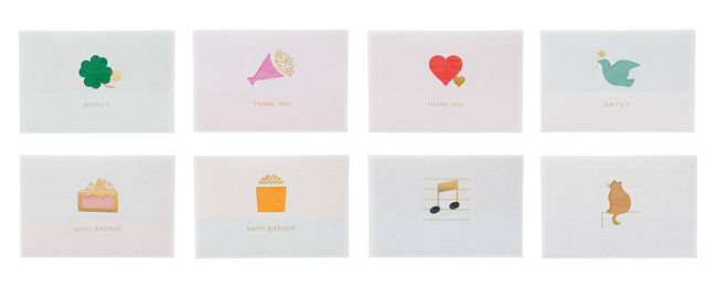 本体価格:330円(税込)/種類:全8種/内容:封筒1枚、カード1枚 (添紙1枚)/製品寸法:封筒W140×H90mm、カード(二つ折り)130×85mm