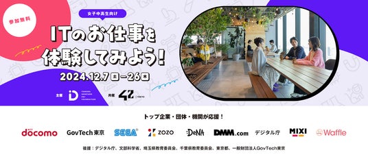 一般社団法人42 Tokyo(本社:東京都新宿区、代表理事:坂之上洋子、以下「42 Tokyo」)と公益財団法人山田進太郎は、NTTドコモ、セガ、ZOZO、DeNA、DMM.com、デジタル庁、日本IBM、MIXIなど、日本を代表する10のIT企業・団体・機関と協力し、「Girls Meet STEM~ITのお仕事を体験しよう~」を12月7日、14日、15日、21日、22日、26日に開催します。本イベントは、デジタル庁や文部科学省、東京都などの後援を受け、中高生女子がIT業界でのキャリアをイメージしやすくなるよう、参画企業や機関のオフィスでのプログラミング体験や女性エンジニアとの座談会を実施します。