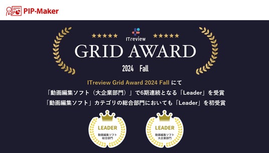 株式会社 4COLORS(本社:神奈川県横浜市、代表取締役 加山 緑郎、以下 4COLORS)が提供する大企業の自律的なDXを推進するアバター動画作成サービス『PIP-Maker』(ピーアイピーメーカー)は、アイティクラウド株式会社が運営するIT製品レビューサイト「ITreview」の「動画編集ソフト」カテゴリにおける「大企業部門」で、ユーザーからの満足度・認知度が最も高い製品に贈られる『Leader』を6期連続で受賞いたしました。また、「動画編集ソフト」カテゴリの総合部門においても、『Leader』を初受賞いたしました。