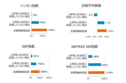 市場日次上昇率上位5日、および30日に投資をしていなかった場合の影響