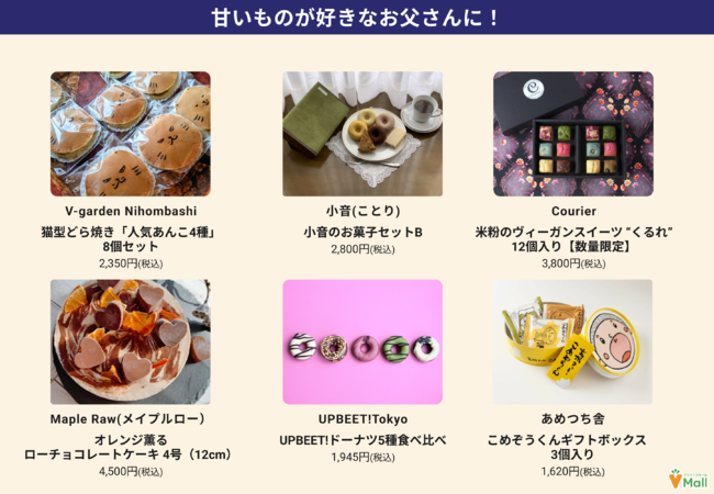 ブイクックモールの父の日特集では、全国のヴィーガン店から「おいしくてカラダも労えるとっておきのギフト」を取り揃えました。