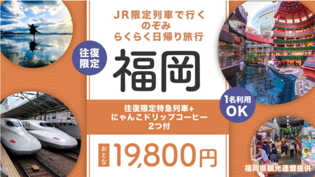 株式会社フォーティーズ(本社:大阪市鶴見区、代表取締役 岡武史)は関西発 R限定列車で行く!のぞみで行く福岡★にゃんこドリップコーヒー2つ付 らくらく日帰り旅行プランを発売開始です。